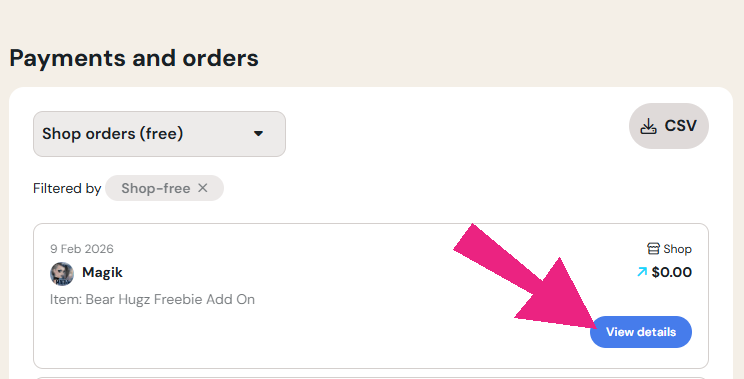 Scroll down to ‘Payments & orders: